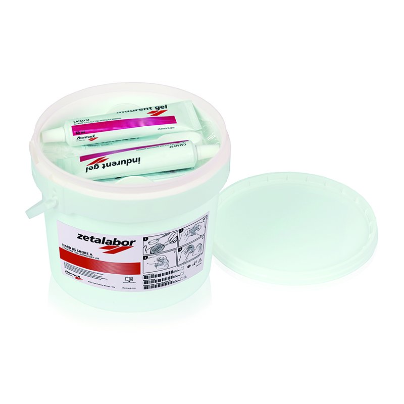 Silicona de condensación para laboratorio probada testada y elegida - Dureza 85 Shore-A. Mezclaexcelente. Para mezcla con el catalizador - Indurent gel o líquido. Altísima fluidez inicial para una excelente reproducción los detalles. Su elasticidad asegura gran resistencia a la rotura.