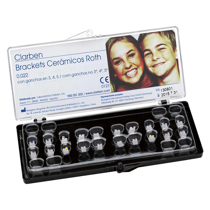 1 caso Roth 0.18 cerámica Laboratorios Clarben - 20 brackets con ganchos en 3,4 y 5