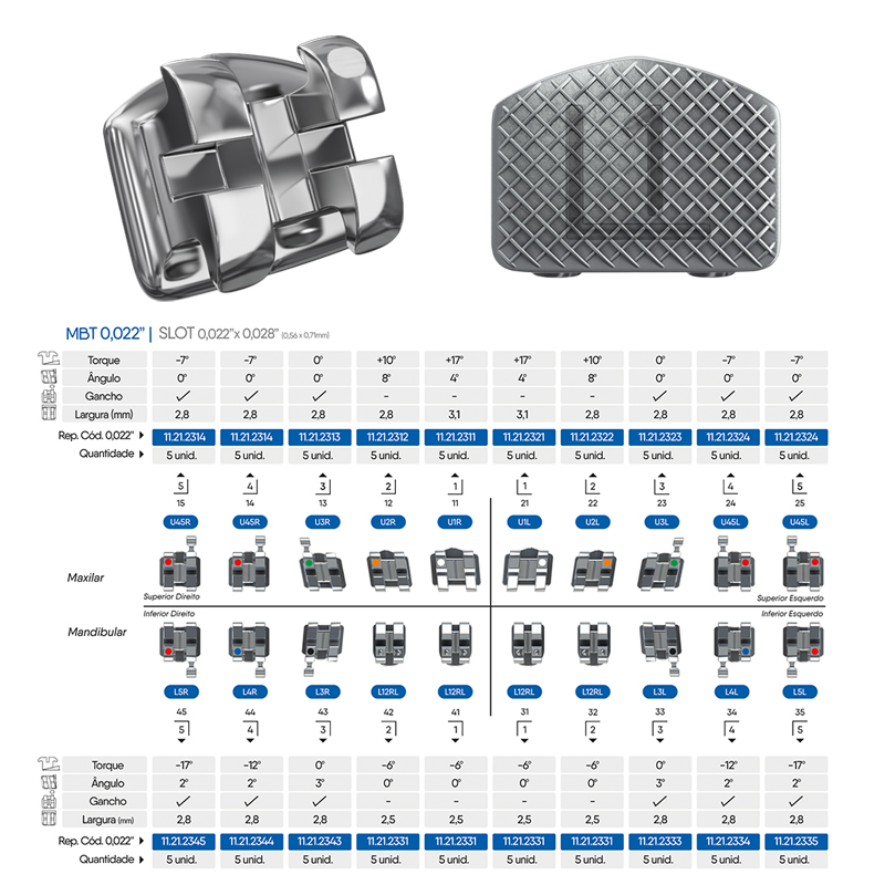 Brackets Mbt 0.22 Elite premium 3.4.5 con gancho Orthometric